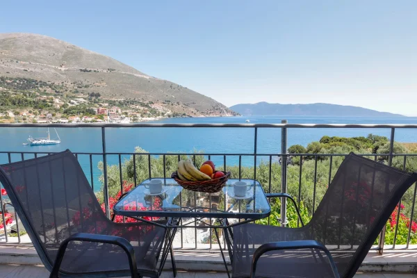 Elegant and bright studios with a private balcony offering wonderful views of the sea and Agia Efimia Bay.
